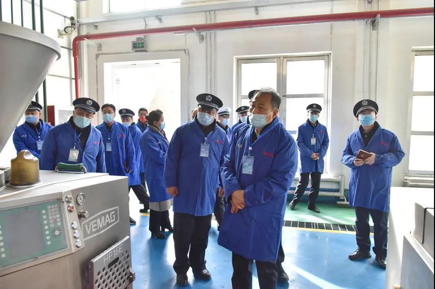 中國工程院院士、公司獨(dú)立董事汪旭光(左三)在生產(chǎn)車間現(xiàn)場檢查指導(dǎo)工作