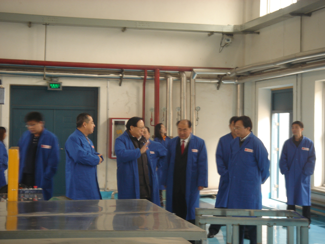 中國(guó)工程院院士、公司獨(dú)立董事汪旭光(左三)在生產(chǎn)車間現(xiàn)場(chǎng)檢查指導(dǎo)工作